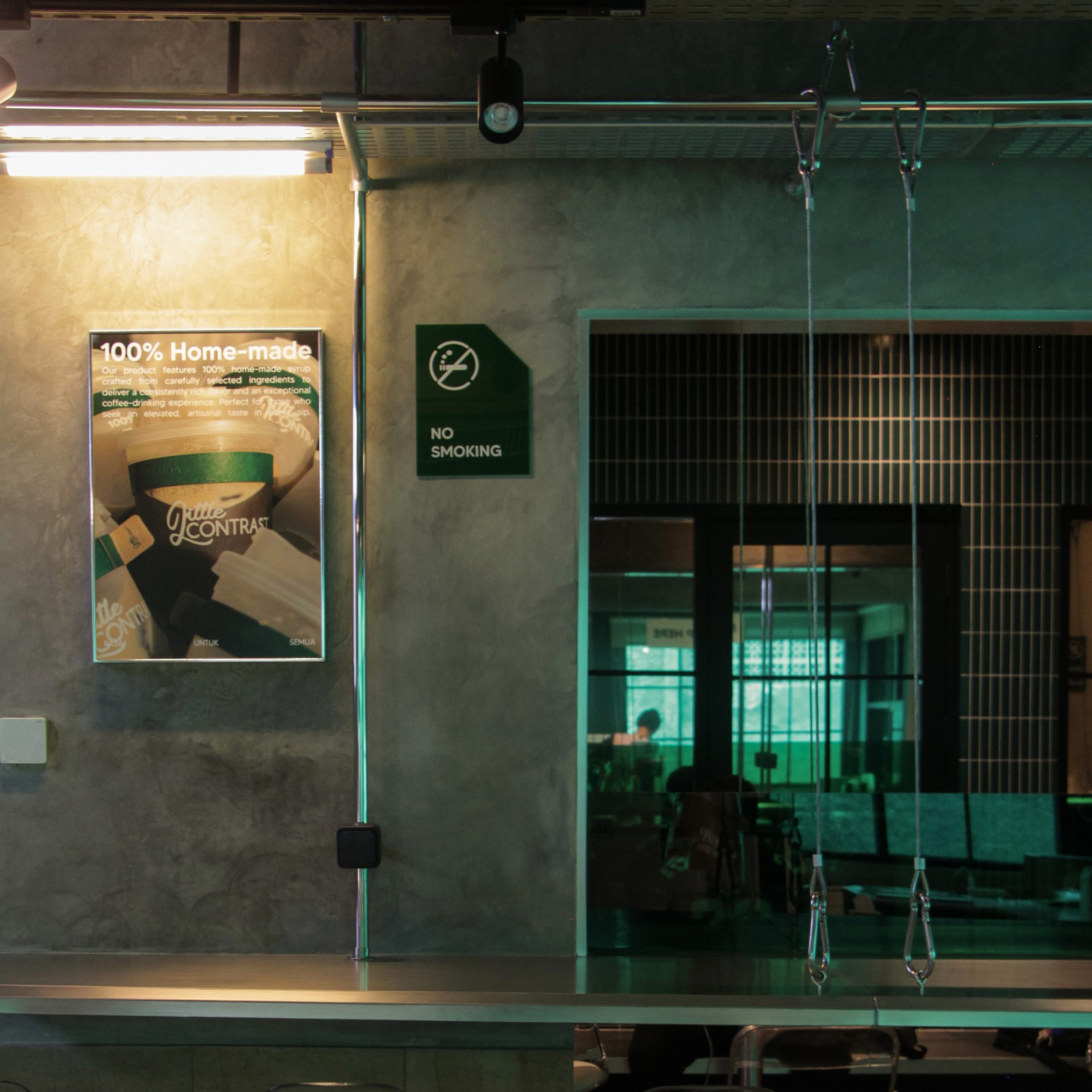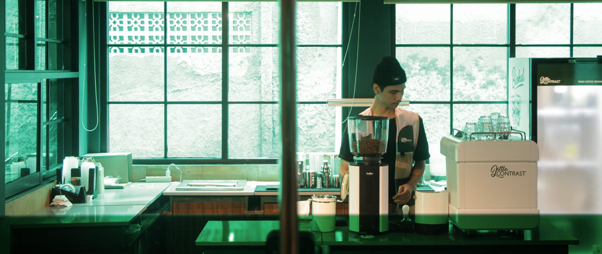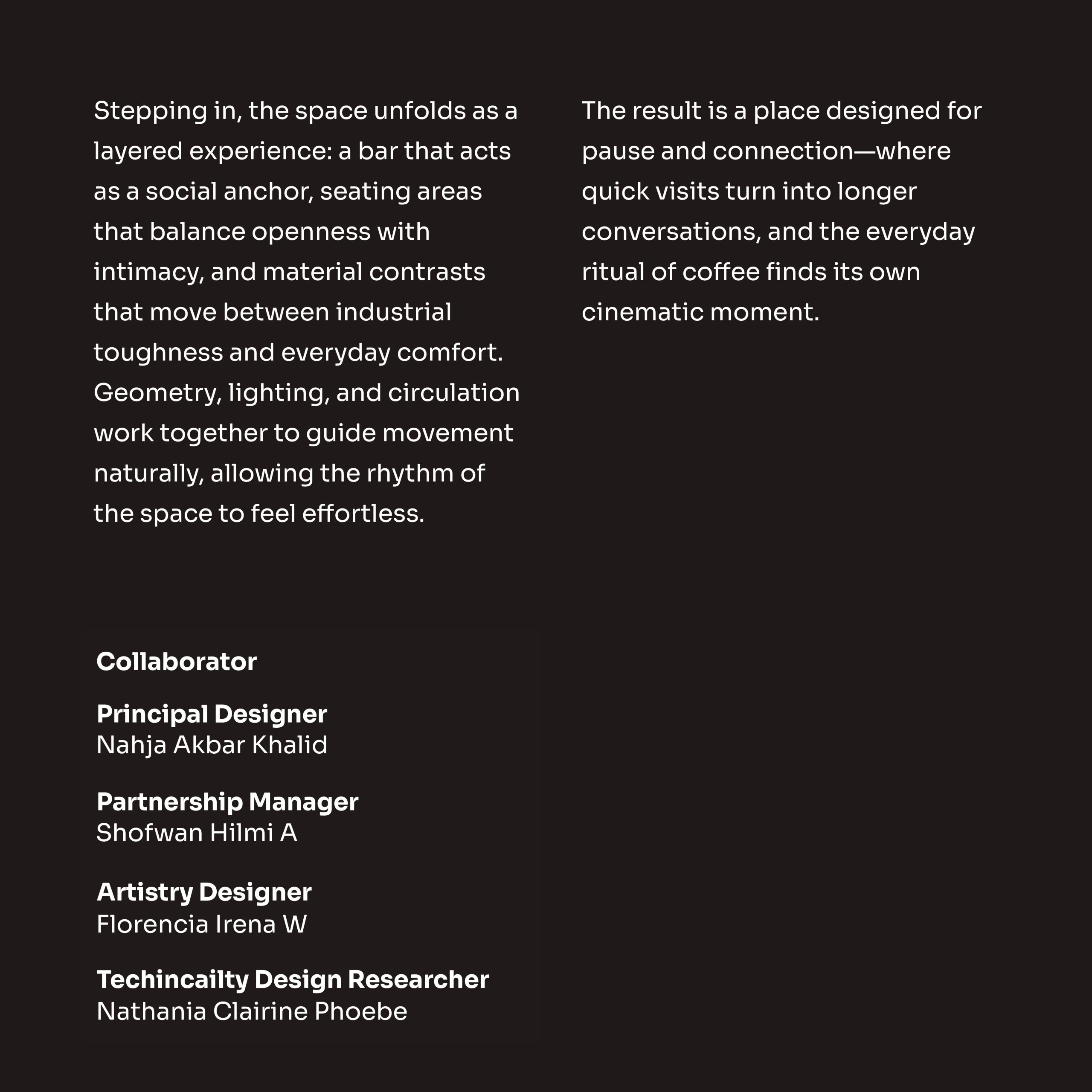 Little Contrast Cawang draws inspiration from the quiet glow of Lou’s Tavern—where neon light, raw textures, and late-night energy shape the atmosphere.